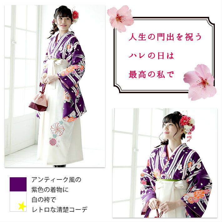 レンタル 卒業式 袴 女性 大学生 フルセット レディース 大人 小学生 短大生 SS S M L LL 二尺袖 大正ロマン レトロ モダン 正統派 古典 大学 紫 縞 白袴 アンティーク風 花柄 刺繍 安い 小さい 大きい 予約 小振袖 ジュニア 急ぎ 早く ギリギリ 往復送料無料