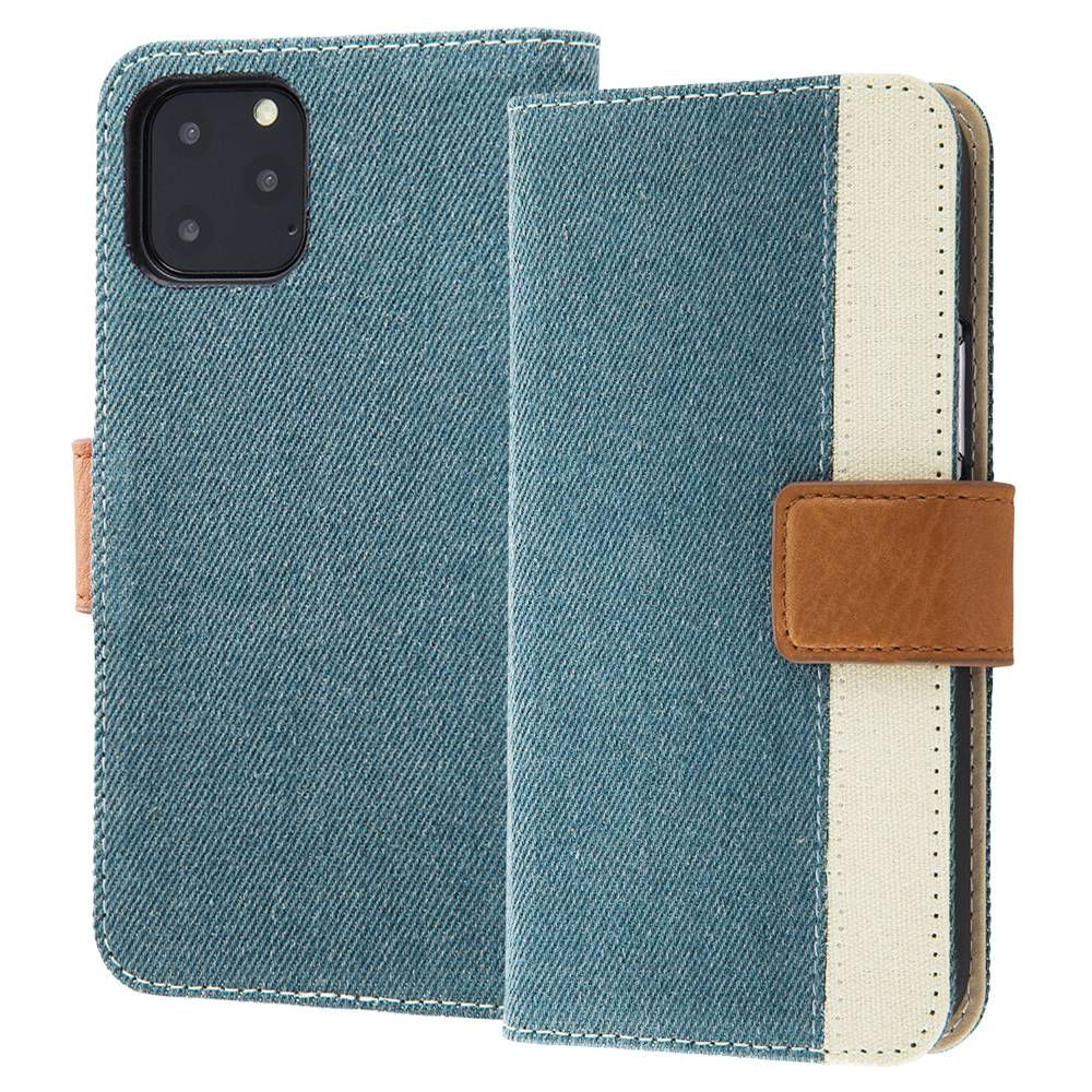 デジタルアルキミスト iPhone 11 Pro 手帳型 ファブリック ケース デニム 帆布 Canvas Line ICカードポケット ストラップホール カバー ライトブルー DT-P23FBC8/LA
