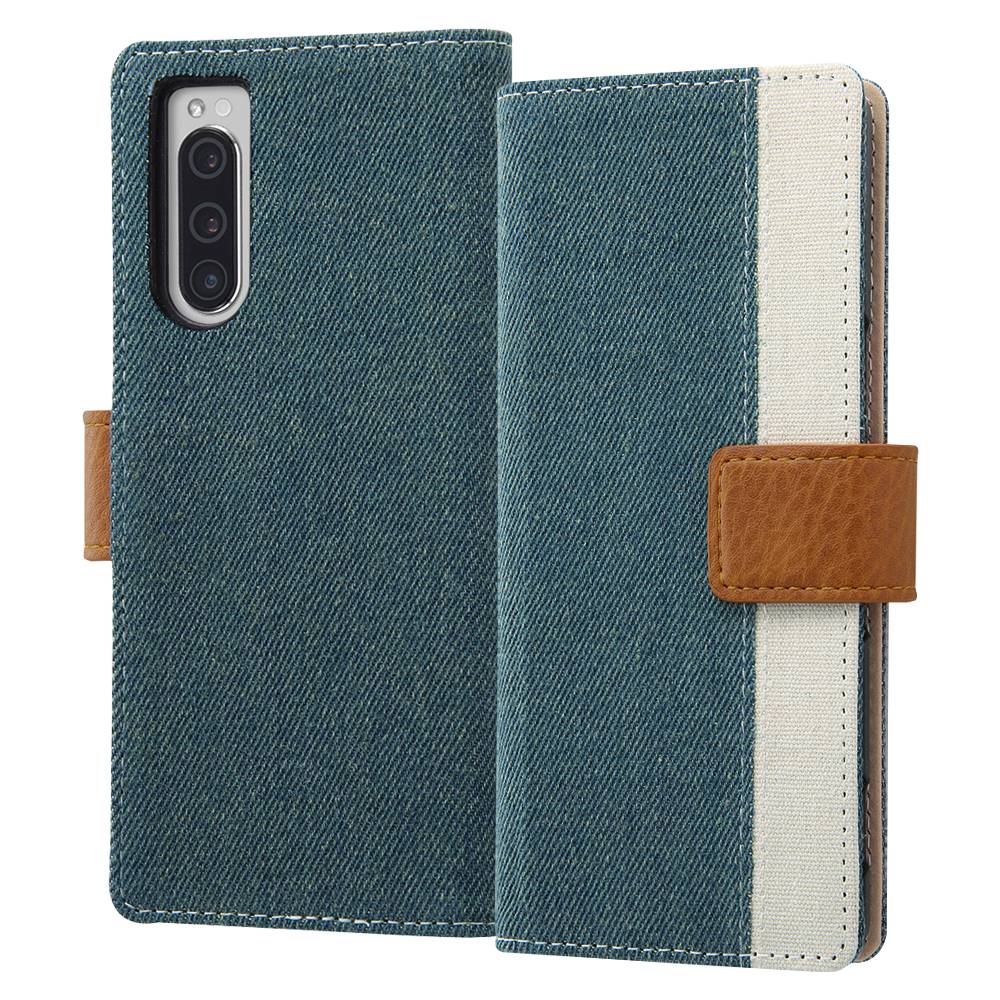 Xperia 5 手帳型 ケース カバー デジタルアルキミスト デニム&帆布 Canvas Line/アイスブルー DT-RXP5FBC8/IA