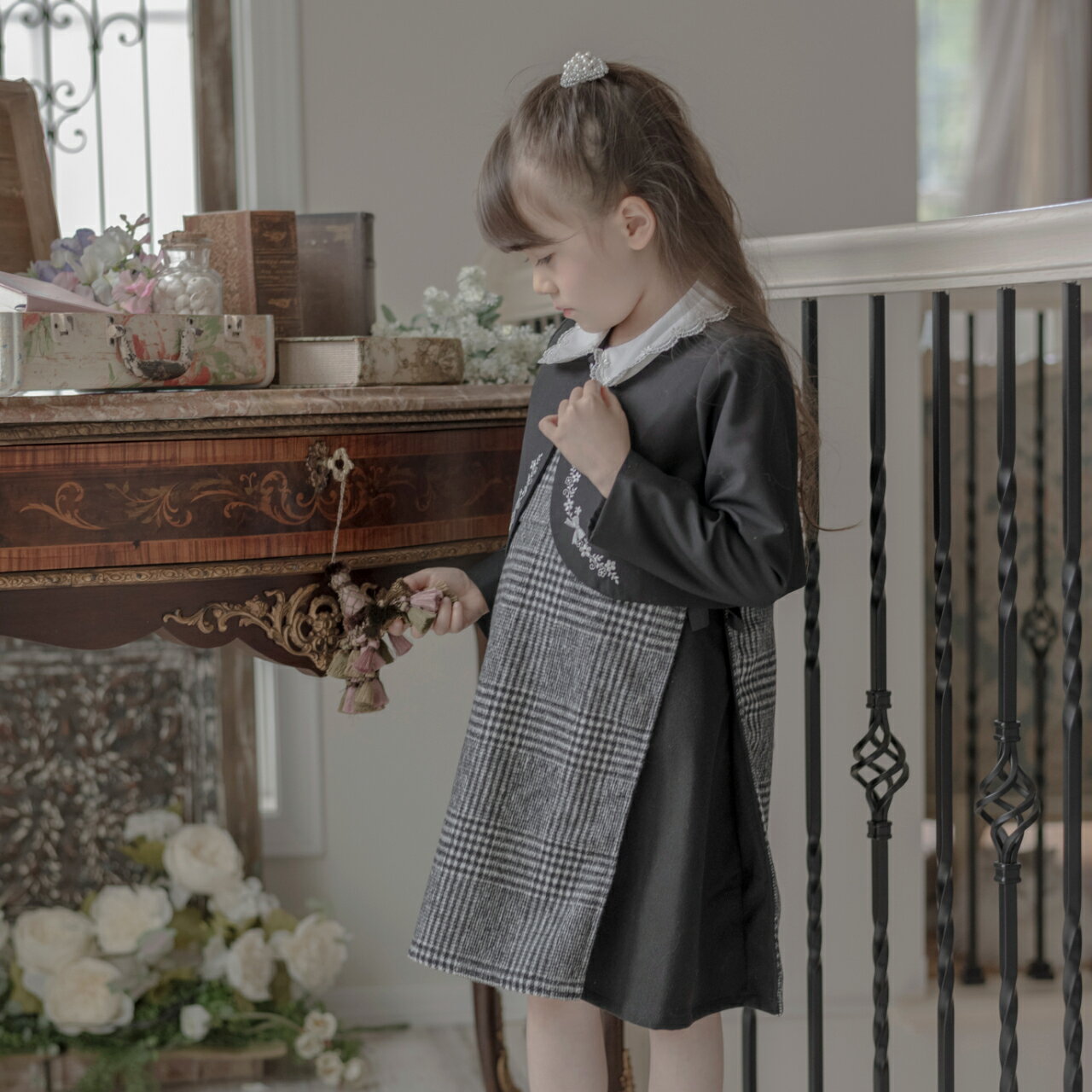 チェックジャンパースカート+ボレロ アンサンブル Catherine Cottage ジャンパースカートで作る! 女の子セレモニースタイル 卒園式や入学式のキッズスーツスタイルは、 式後も着まわしができたら嬉しい! 子供ドレスショップのキャサリンコテージが提案するのは、 七五三や結婚式、発表会、お誕生日など その他フォーマルシーンで主役になれる チェックジャンパースカートに、 ボレロを合わせたスタイリング。
