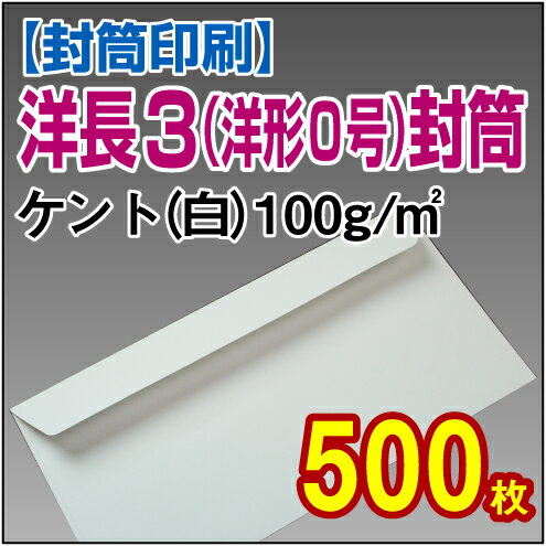 【封筒印刷】洋形0号(洋長3)封筒 白(ケント)〈100〉 500枚【送料無料】 洋0 洋長3 封筒 印刷 名入れ封筒 定形封筒