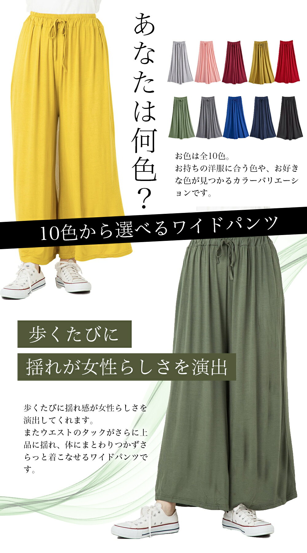 一度履いたらやめられない とろみ素材の柔らかパンツ ゆったり やわらか エアリー パンツ 無地 スカンツ ガウチョ コットン ロング パンツ ボトムス レディース とろみ素材のゆったり柔らか無地スカンツ 動いて触れるたびに肌触りの良いカットソー素材。
