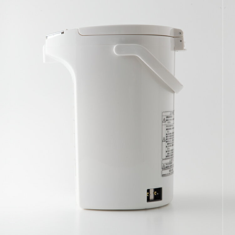 商品情報容量4.0L色柄ホワイト消費電力700W本体サイズ(約)幅21.3×奥行27.9×高さ34.2cm 本体重量約 2.2kg湯沸かし時間(満水)約36分電気代/1日約40円材質胴部・上ふた・ハンドル/ポリプロピレン、内容器/ステンレス鋼、操作パネル・水量計シール/テトロンフィルム、給湯ボタン/ABS樹脂(メッキ加工)、上ふた開閉ロック/ABS樹脂生産国中国注意●水を入れない状態で通電をしないでください。